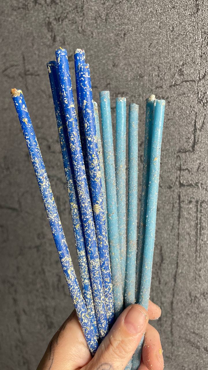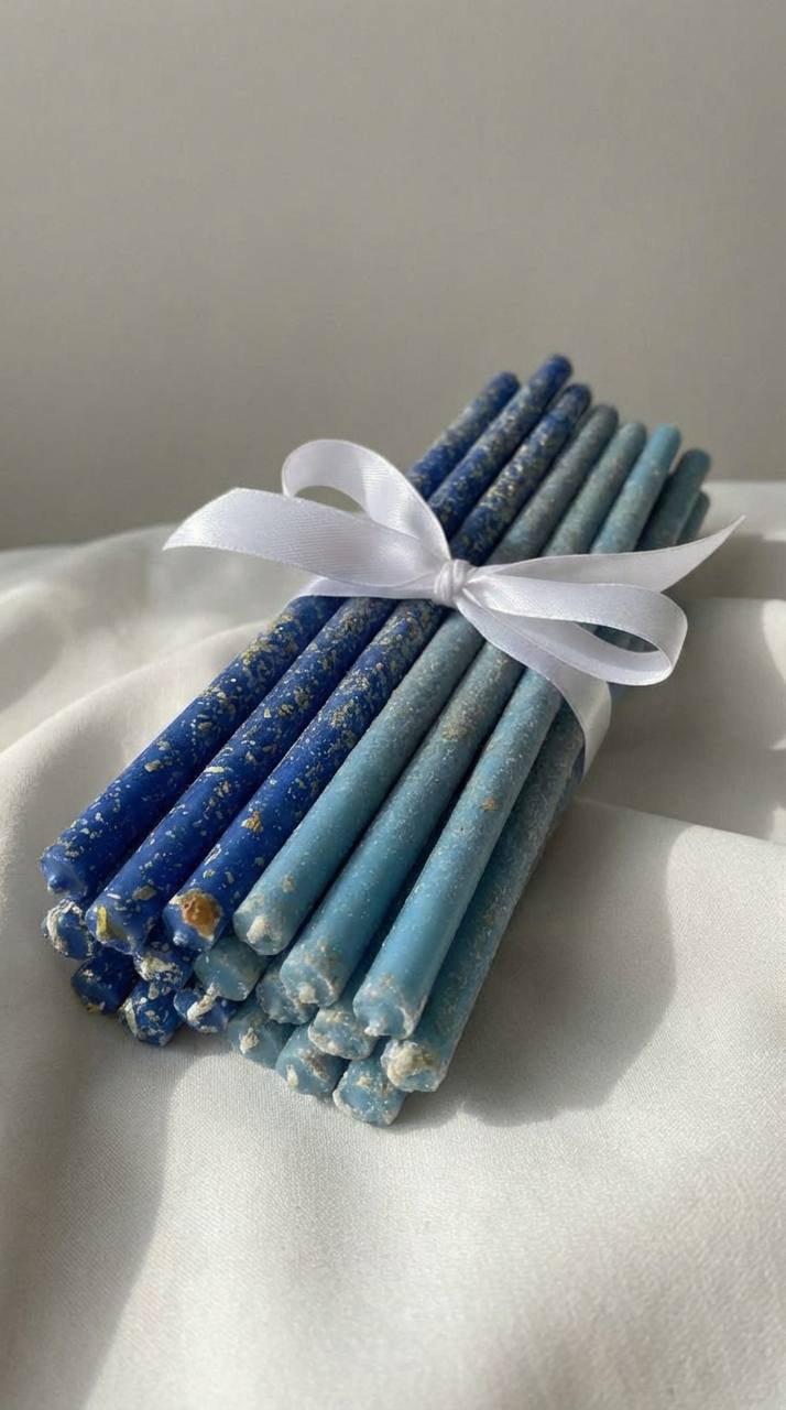 Набор тонких свечей — 6 синих с мимозой + 6 голубых с лавандой — для ежедневной гармонии. Синие успокаивают ум, мимоза дарит нежность; голубые снимают напряжение, лаванда исцеляет душу. 12 свечей — по одной на каждый момент внутреннего баланса.
