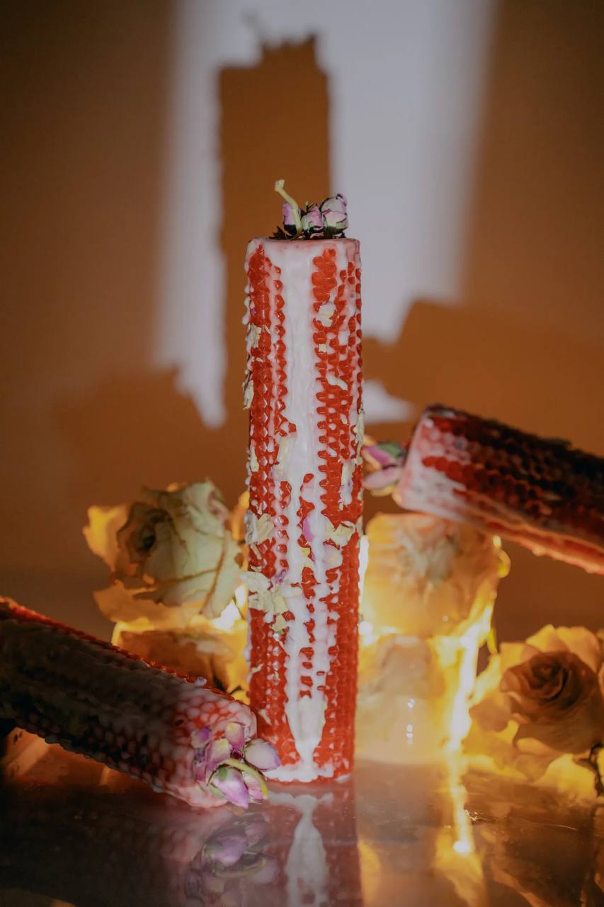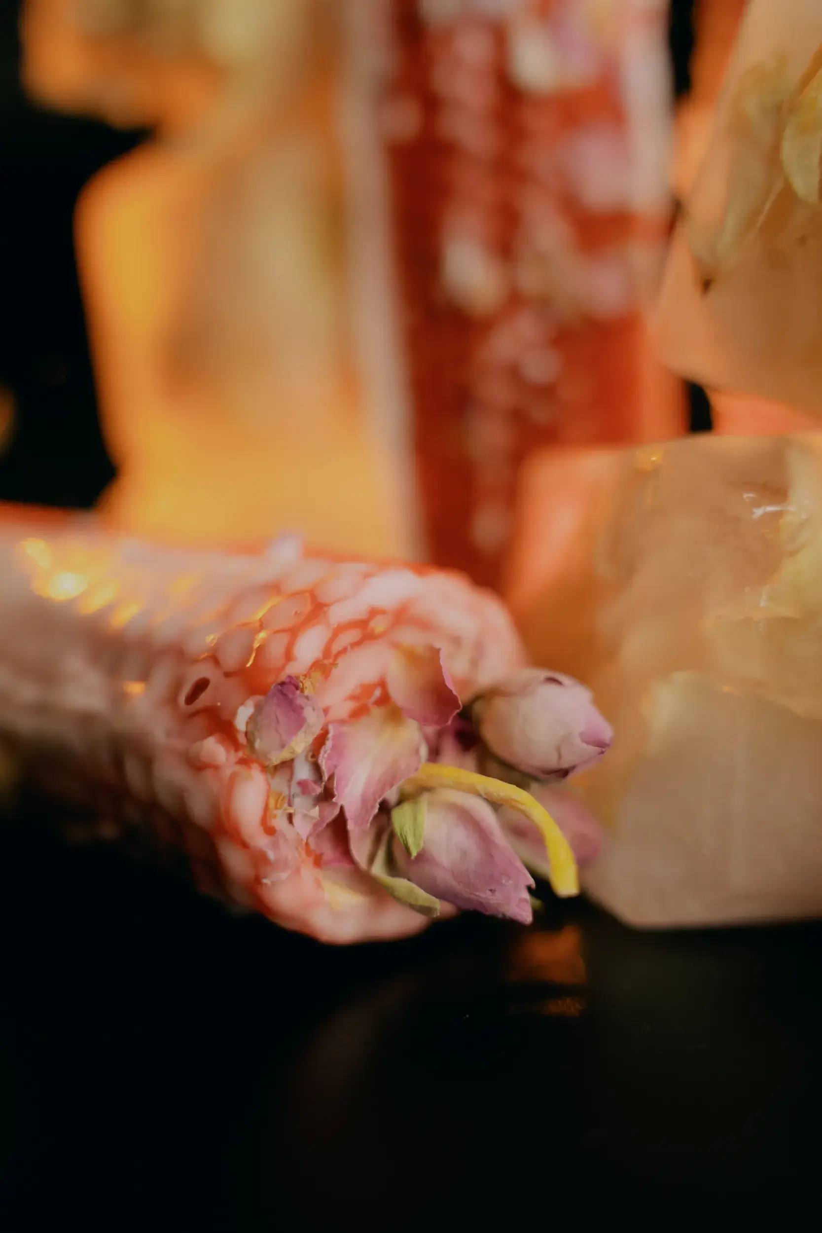 Она поймала вихрь нежности и страсти, запечатала его в тонкий восковой стержень, добавив лепестки красных роз, щепотку корицы и каплю терпкого жасмина — всё то, что разжигало сердце и заставляло чувства бурлить, словно буря.