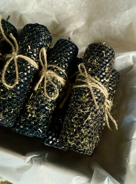 Считалось, что при горении такие свечи поглощают негативные энергии, снимают усталость и тревожность, создают защитное поле, способствующее гармонии и душевному равновесию. Эта свеча изготовлена из 100% натуральной пчелиной вощины, которая обладает природными антисептическими и энергетическими свойствами.